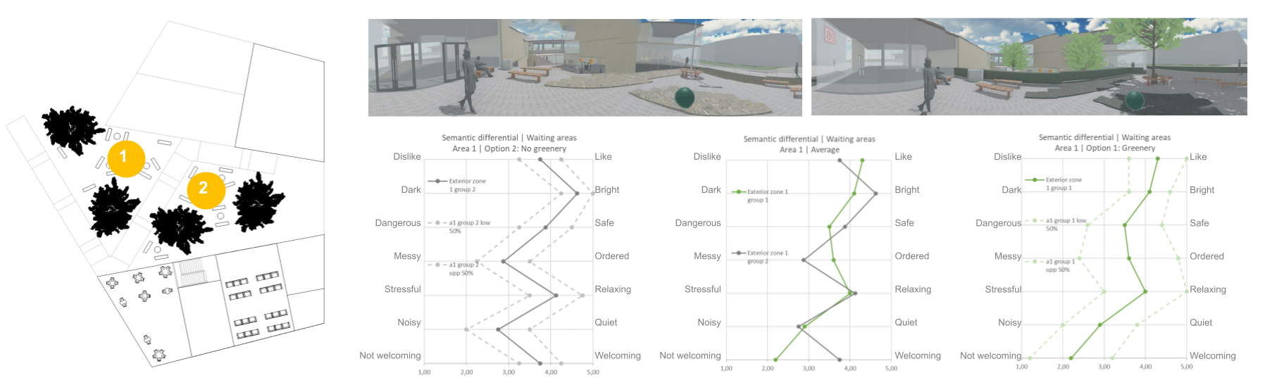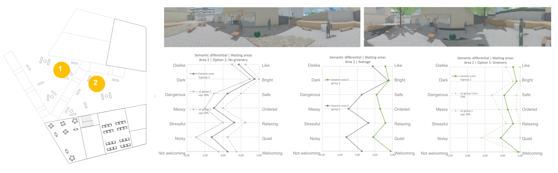 Luego se analizan las características subjetivas del espacio como la iluminación, el orden o el agrado, sobre todo en aquellas zonas donde el público permanece más tiempo, como las zonas de espera, y se comparan las respuestas de ambos diseños para decidir cuál será mejor para un posible público.